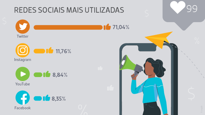 O Twitter é a menina dos olhos dos influenciadores e responde por mais de 70% das publicações na soma das mídias analisadas.