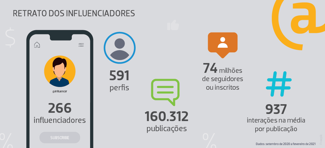 A primeira edição do relatório Influenciadores de Investimentos identificou 266 players com perfis ativos entre setembro de 2020 e fevereiro de 2021. Nesta página, você tem acesso aos destaques. Se quiser se aprofundar no assunto, baixe o material completo.